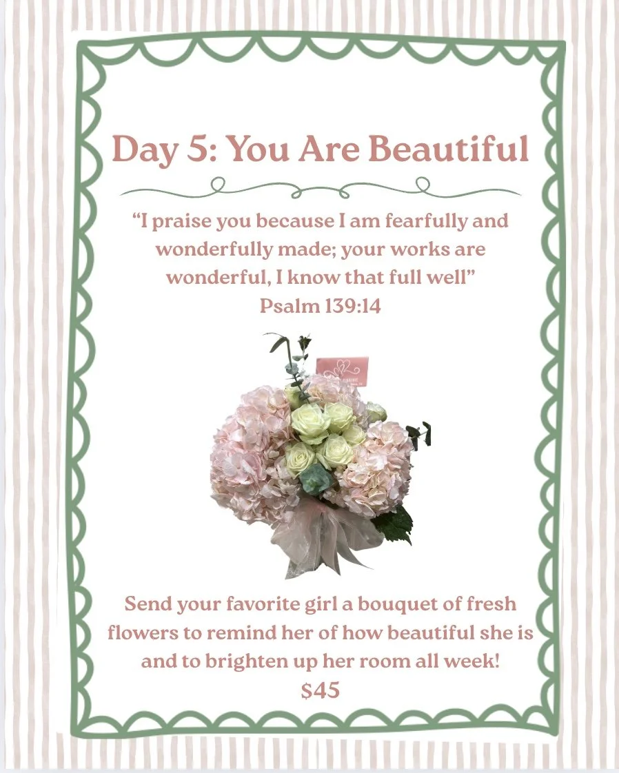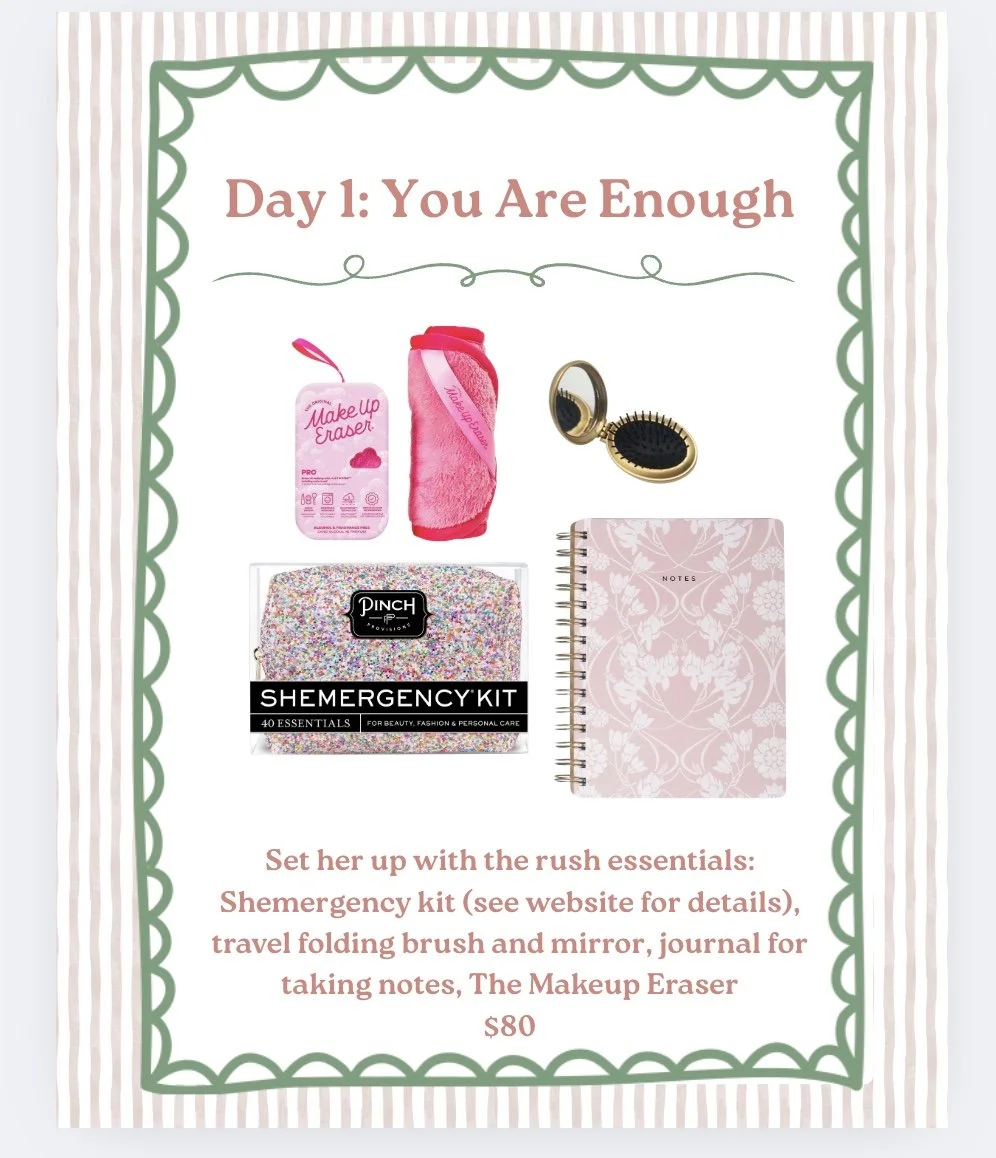 Categories: All RUSH WEEK DAILY HAPPIES "SMART" Finals Study basket Laura Park Designs (coming soon) Erin Gray Designs Jewelry GAME DAY! Homemade Sweets & Treats Girls Gifts Guys Gifts Greek Gifts Smathers & Branson Gifts PICKLEBALL!!!!! Services Baskets Floral Arrangements All / Rush Week Daily Happy Bundle (all of the daily happies) $300.00 Add To Cart Added! Rush Week Day 1 Happy: YOU ARE ENOUGH $80.00 Add To Cart Added! Rush Week Day 2 Happy: $52.00 Add To Cart Added! Rush Week Day 3 Happy: YOU MATTER...Pamper Yourself! $90.00 Add To Cart Added! Rush Week Happy Day 4: YOU ARE AS SWEET AS SUGAR $20.00 Add To Cart Added! Rush Week Happy Day 5: YOU ARE BEAUTIFUL $45.00 Add To Cart Added! Rush Week Happy Day 6: YOU ARE CHOSEN $44.00 Add To Cart Added!